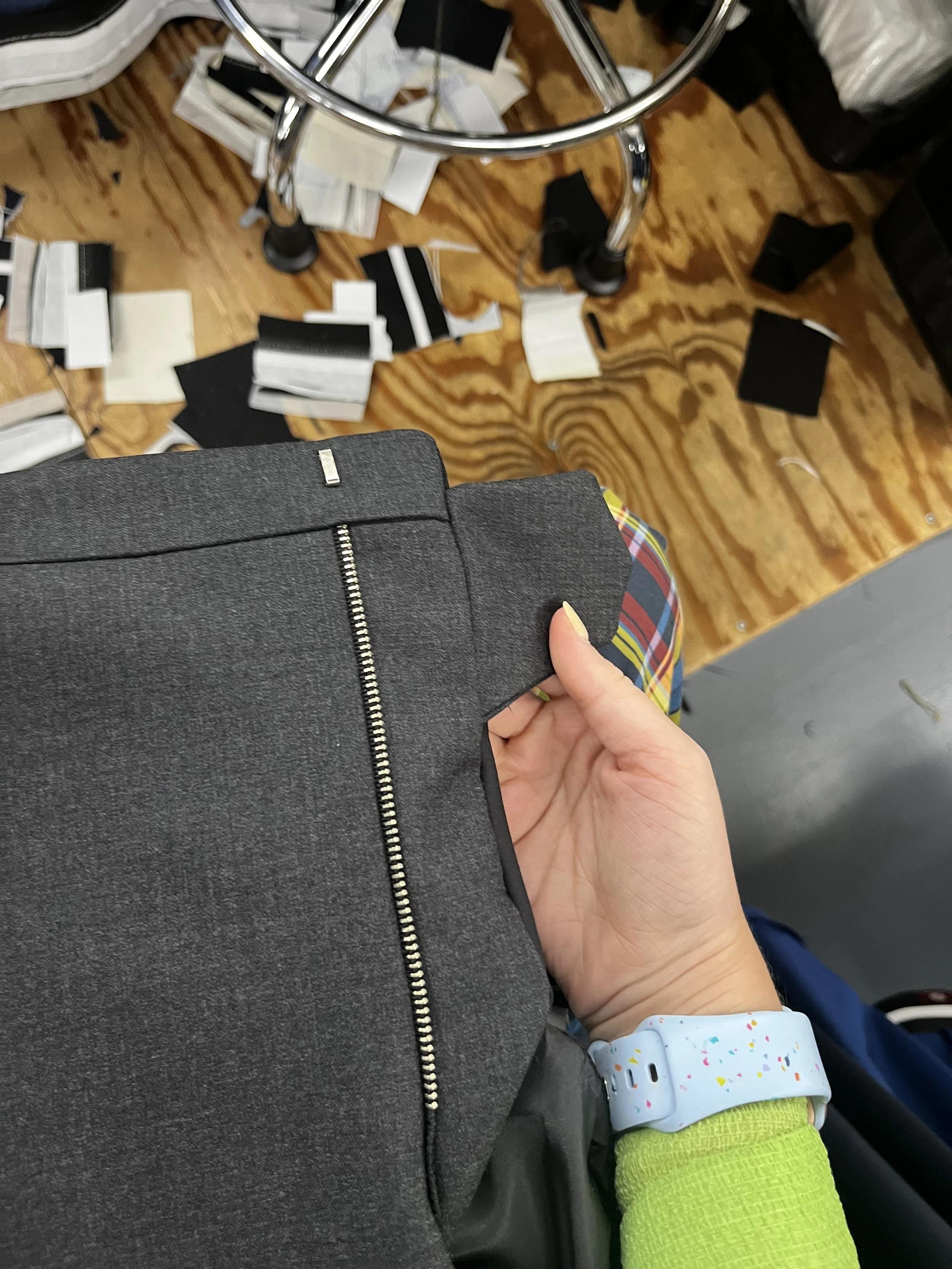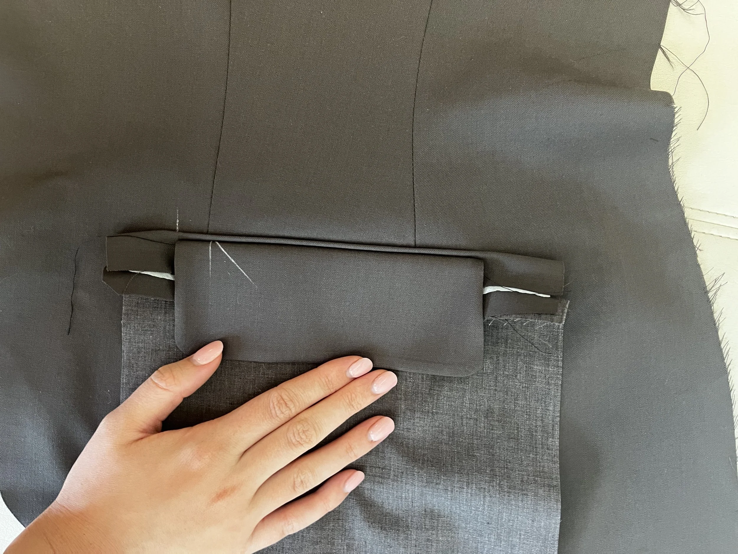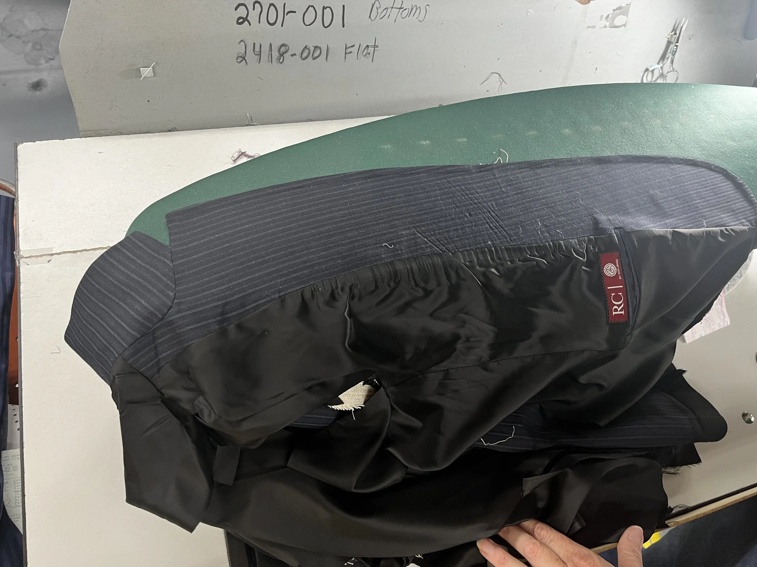 Over the course of the internship, I had the opportunity to rotate through multiple departments, from the cutting floor to the pant and coat shops — learning hands-on about industrial equipment, garment construction, quality control, and how a highly collaborative workforce brings complex custom orders to life. I shadowed and worked alongside skilled operators, supervisors, and CAD specialists, many of whom took time to teach me directly or allow me to try certain steps myself, including sewing part of my custom pant and coat.